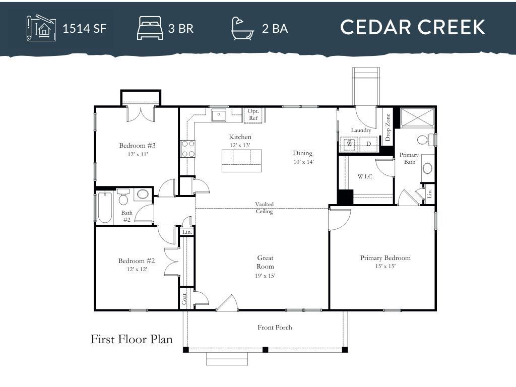 New Rock River construction offers the Cedar Creek floor plan on over 5 peaceful acres, just outside the town of Kilmarnock and ready for move-in by late summer. This open-concept home features a welcoming front porch, 3 bedrooms, and 2 full baths, along with a spacious great room highlighted by vaulted ceilings. The gourmet kitchen is designed for both everyday living and entertaining, offering a large prep island, abundant cabinetry, and granite countertops. The main-level primary suite includes a generous en-suite bath with an oversized shower and a large walk-in closet. Two additional guest bedrooms share a well-appointed hall bath. Thoughtful finishes throughout include luxury vinyl plank flooring in the living areas and baths, granite countertops in the kitchen and baths, 9-foot ceilings, ceiling fans in the bedrooms and great room, 6-inch baseboard trim, bullnose drywall corners, Delta fixtures, a conditioned crawl space, and a concrete front porch and lead walk. Conveniently located just minutes from the Ferry to Yankee Point Marina and a short drive into Kilmarnock for shops and restaurants, this home offers the perfect blend of privacy and accessibility, capturing the best of Northern Neck living.